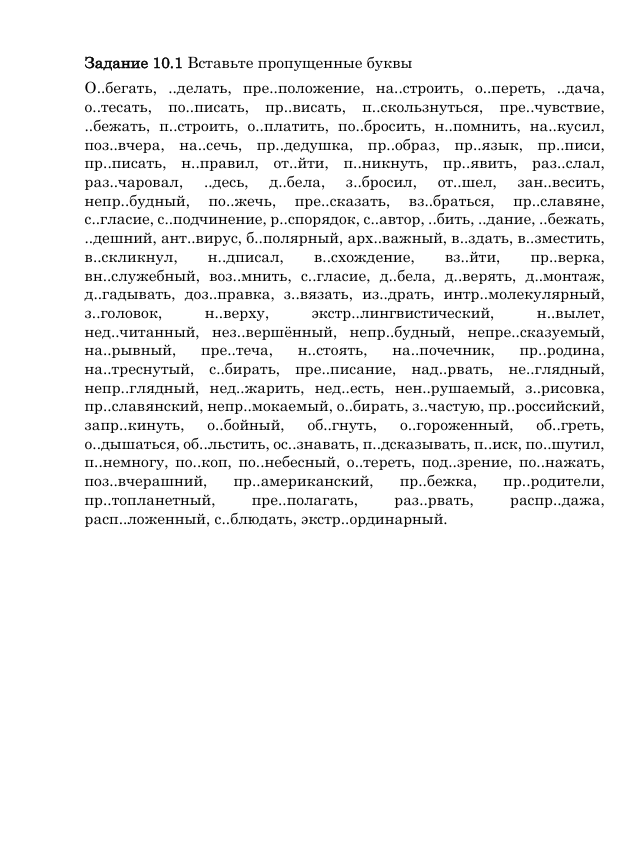 - Правописание неизменяемых приставок;