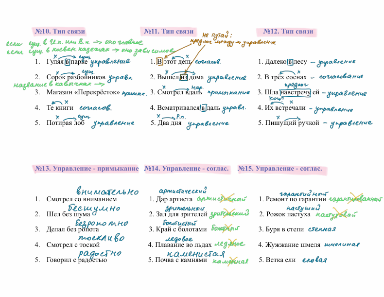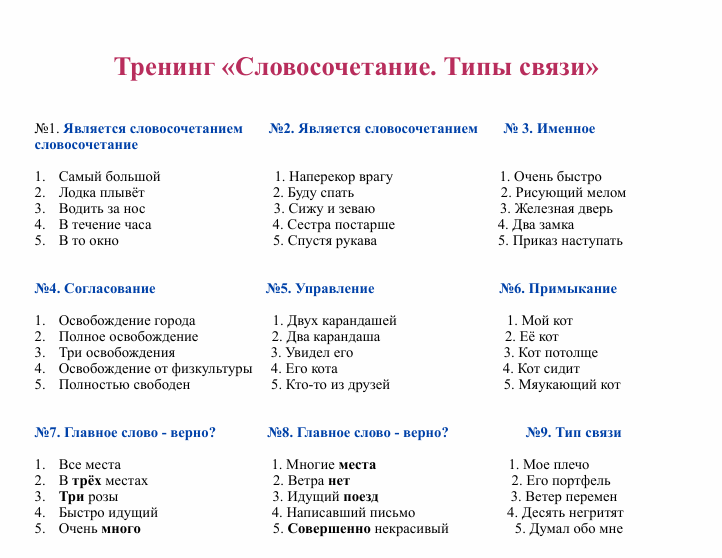 - типы связи в словосочетании;