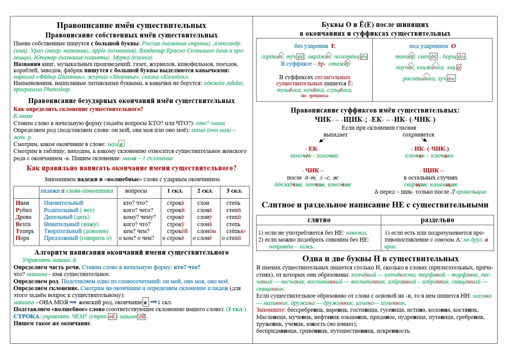- цветная таблица с теоретическим материалом,