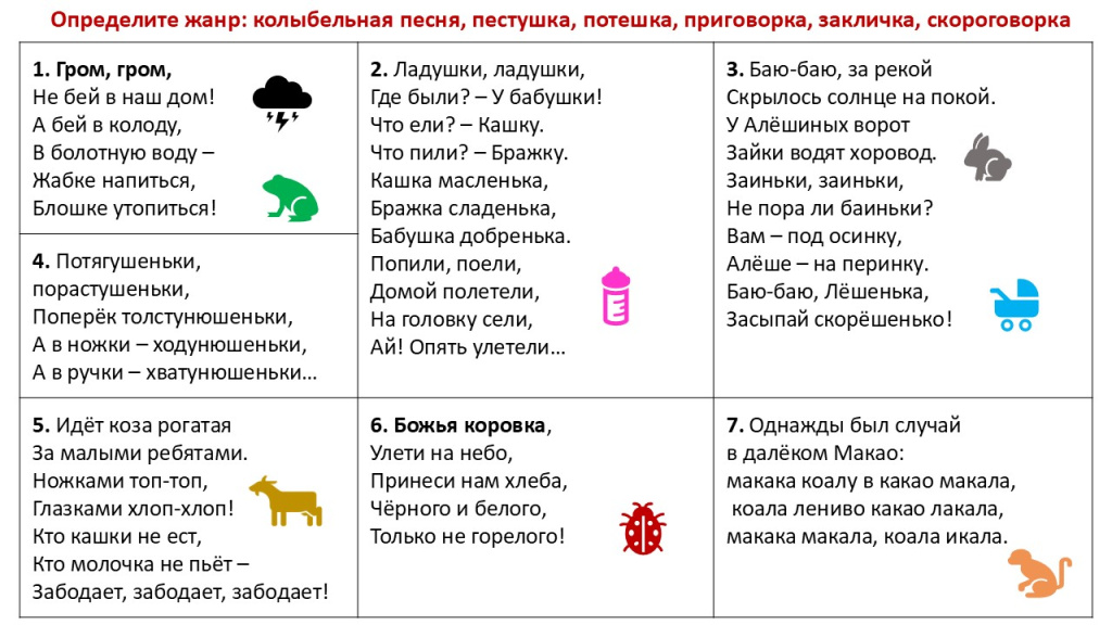 6. УНТ. Малые жанры. Пестушки, потешки, скороговорки, загадки;