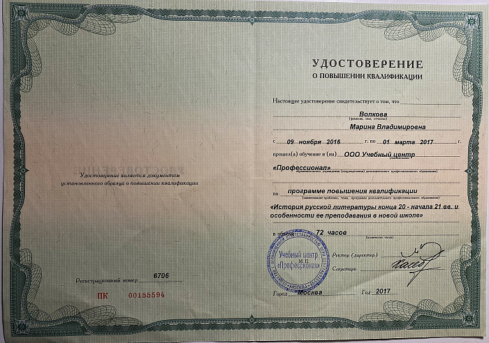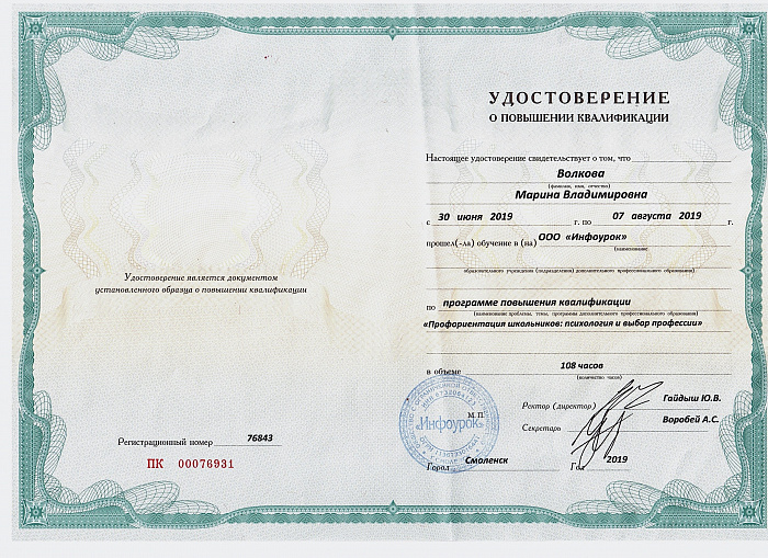 Повышение квалификации (свидетельства и сертификаты)