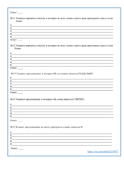 Задания по орфографии 9-15 ЕГЭ