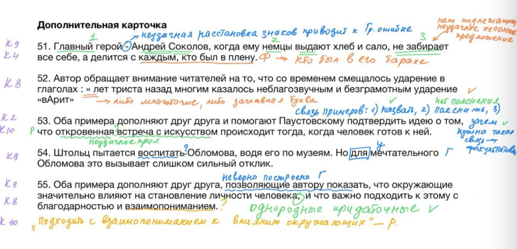 Оно состоит из 10 карточек, каждая включает 5 предложений/мини-отрывков со всевозможными ошибками, которые надо обнаружить.