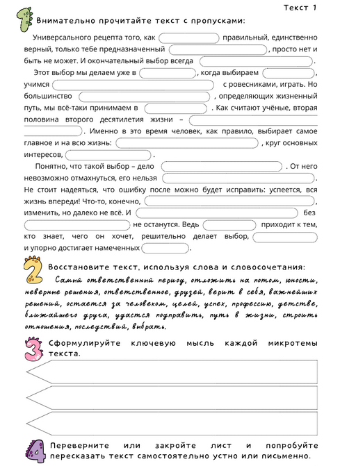 Работа с текстами (30 рабочих листов по текстам изложений ОГЭ)